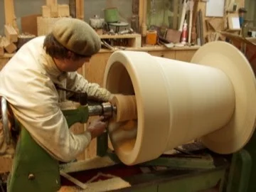 Maar dan wel heel mooi hout: Taxushout. Aan de onderkant is nog een klein stukje Spinthout te zien, dat is het lichte hout vlak onder de schors. Meer naar binnen zit het Kernhout. Dat is donkerder, bij Taxus warm bruin met een prachtige tekening. Het hout is heel hard en dicht; op de een of andere manier voel je dat al als je er naar kijkt. Al die dingen bij elkaar maken dat Taxushout een van de mooiste houtsoorten is die er in Nederland groeit.